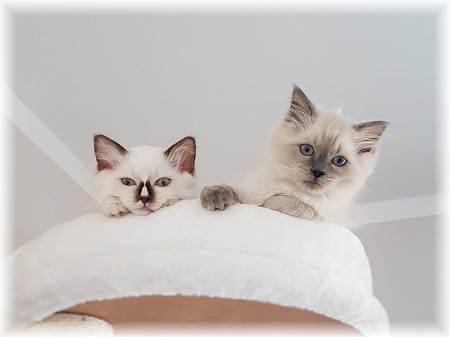 Rudy - blue colourpoint und Lina - chocolate mitted mit Blesse leben zusammen - knapp 1,5 Jahre alt