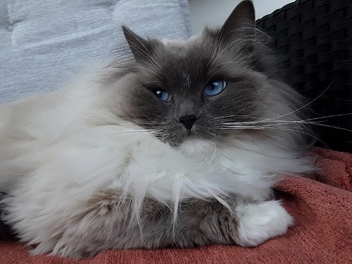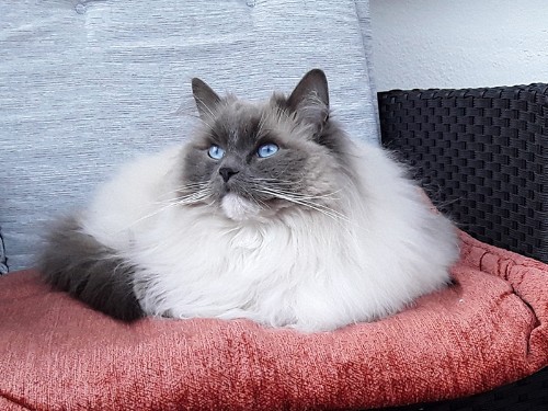 Peter, der nun Merlin genannt wird - blue mitted Kater - fühlt sich in neuem