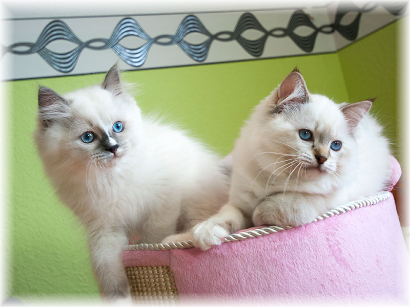 "Q" - blue mitted mit Blesse Katerchen - links und Isabelle - chocolate lynx mitted