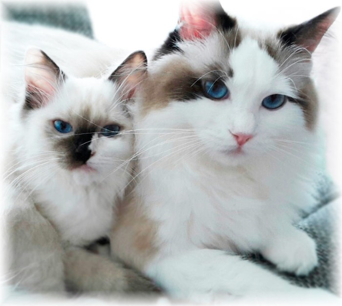 Sandy - links - seal tortie mitted und Nilo - seal bicolour - sind Geschwister.