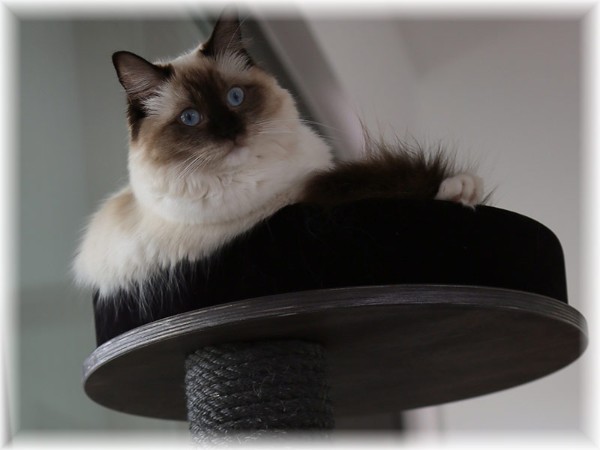 verreist die ganze Familie gerne . Die Katzen gehen auch an der Leine und gewöhnen sich schnell dank des Kratzbaumes " to go" an jede neue Umgebung - nicht ganz üblich bei Katzen... | | Victoria Lucie auf dem besagten Kratzbaum
