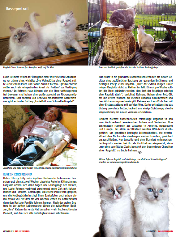 Unsere Cattery wurde von der Presse besucht und es entstand ein Rasseportrait über die Ragdolls